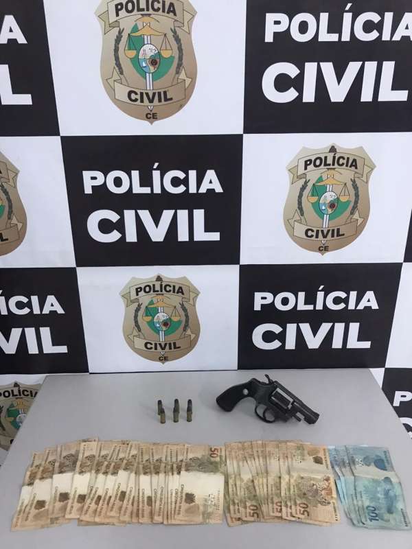Após informações provenientes de denúncias anônimas, os policiais civis abordaram um homem identificado como José Vieira de Sousa (52), sem antecedentes criminais, quando trafegava em uma motocicleta na Avenida Sargento Hermínio, no Bairro São Vicente. Ele foi preso em flagrante delito após ter sido encontrado com um revólver calibre 32 acompanhado de seis munições e uma quantia de R$ 2 mil em espécie.
