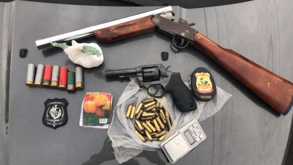 No local, uma espingarda artesanal calibre 12, sem numeração, foi apreendida. No quintal de uma casa vizinha, onde um dos indivíduos tentou se esconder, os investigadores encontraram também um revólver calibre 38, 36 munições do mesmo tipo e 12 unidades de calibre 12, que estavam enterradas. Materiais que apontavam o envolvimento dos adolescentes no tráfico de drogas também foram apreendidos no local, sendo 130 gramas de um pó branco aparentando ser cocaína e também uma caderneta com informações sobre a atividade ilícita. Ambos foram conduzidos à Delegacia Metropolitana de Guaiúba, onde um ato infracional análogo aos crimes de tráfico de drogas e porte ilegal de arma de fogo foi lavrado em desfavor deles.
