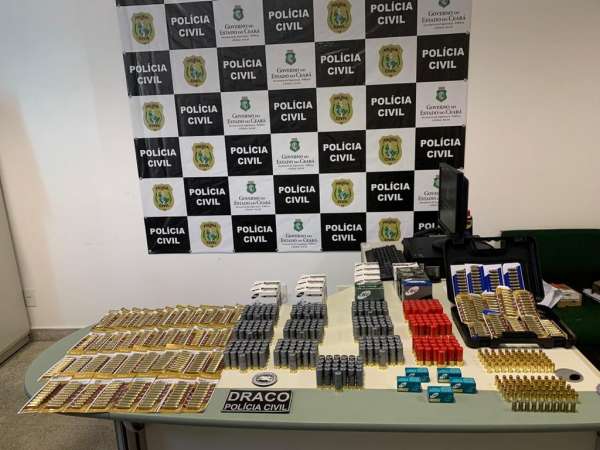 Mais de 1.200 munições de calibres variados foram apreendidas pela Polícia Civil do Estado do Ceará (PCCE) depois de uma investigação conduzida pelo Delegacia de Repressão às Ações Criminosas Organizadas (Draco). O material foi encontrado após o cumprimento de um mandado de busca e apreensão em imóveis nos bairros Granja Lisboa e Bonsucesso – Área Integrada de Segurança 2 (AIS 2) de Fortaleza. A ofensiva ocorreu na última sexta-feira (10) e as informações foram divulgadas em coletiva de imprensa, nesta terça-feira (14).
