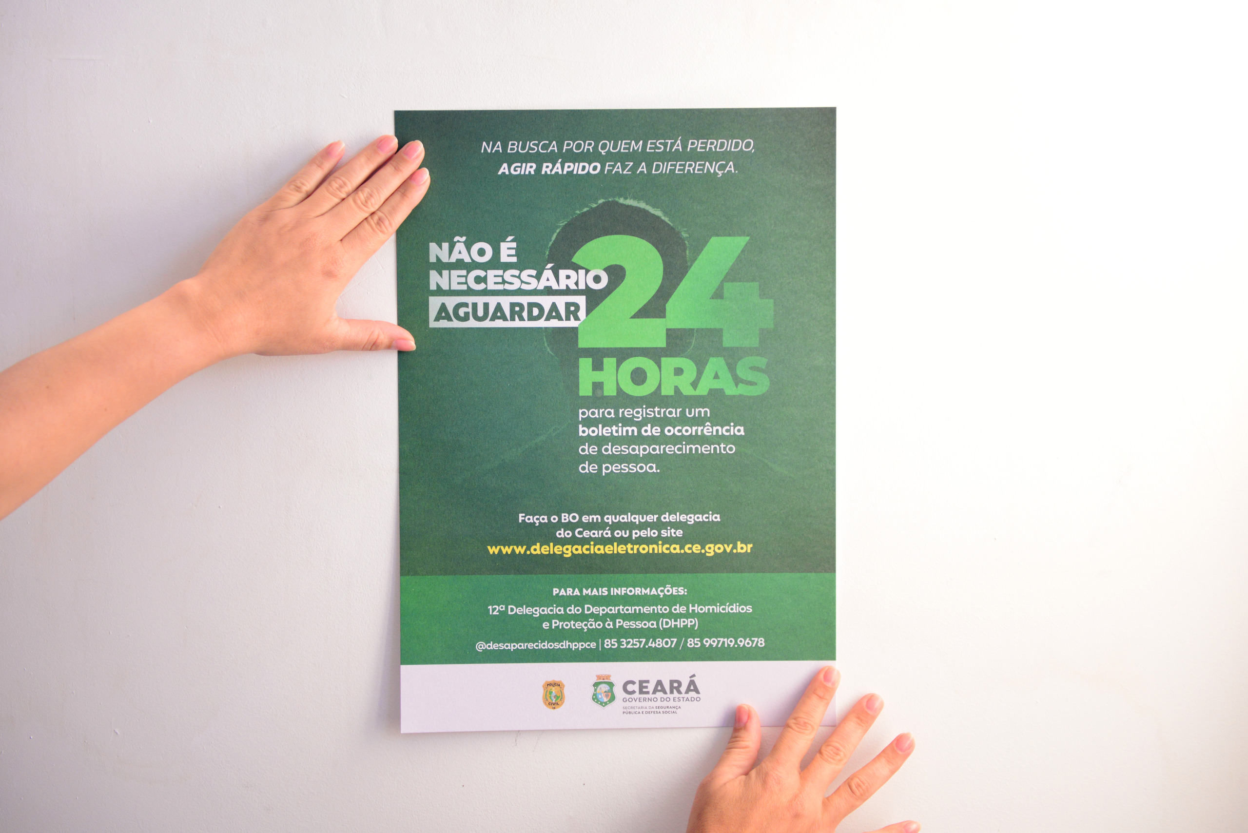 A Polícia Civil do Estado do Ceará (PCCE) iniciou, nesta quarta-feira (5), a instalação de cartazes sobre “Não é necessário aguardar 24 horas para registrar um boletim de ocorrência de desaparecimento de uma pessoa”. A ação, reconhecida pela Lei Nº 18.800, reconhece a inexistência de um prazo mínimo para comunicar um desaparecimento de uma pessoa às autoridades policiais.