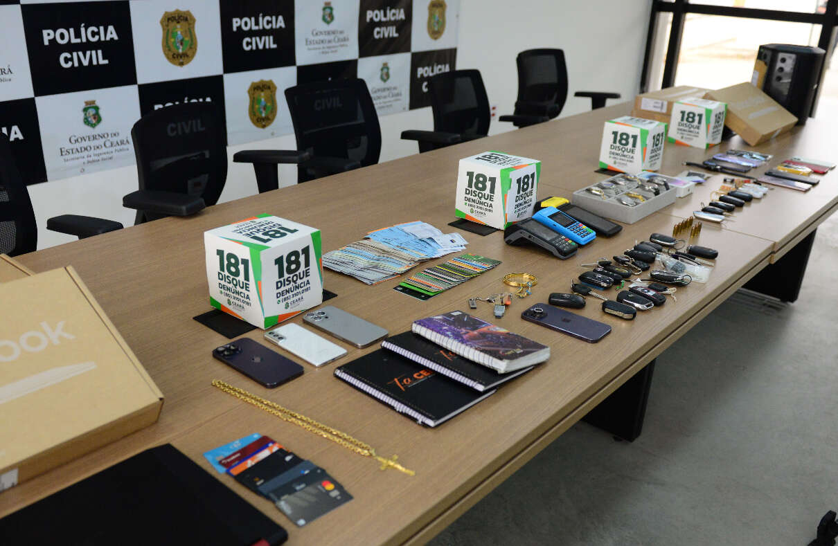 Uma operação desencadeada pela Polícia Civil do Estado do Ceará (PCCE) resultou, nessa quinta-feira (6), no cumprimento de três mandados de prisão preventiva e 20 de busca e apreensão em desfavor de três alvos investigados por crimes de estelionato, falsidade ideológica, falsidade de documento público, lavagem de dinheiro e por integrar grupo criminoso. As prisões ocorreram nos bairros Parque Manibura – Área Integrada de Segurança 7 (AIS 7) e Canindezinho (AIS 9), em Fortaleza, e no município de Itapipoca (AIS 17). Com os alvos, foram apreendidos veículos e relógios de luxo.