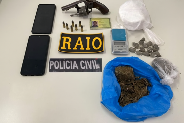 Os policiais tomaram conhecimento de possíveis atividades suspeitas em um imóvel do bairro Araça e cercaram o local. Ao perceberem a presença dos agentes, dois indivíduos tentaram fugir, mas foram capturados. Dentro da casa, a equipe policial localizou um revólver calibre .38, sete munições, 288 gramas de cocaína e 137 gramas de maconha.