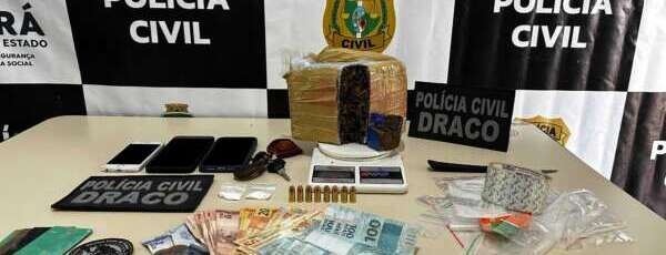 Os policiais civis apreenderam com o indivíduo uma pistola calibre 380, dois carregadores, 22 munições calibre 380, 41 gramas de cocaína, seis gramas de maconha, uma balança de precisão, cartões de crédito, cadernos de anotações, material para comercialização de drogas e aparelhos celulares.