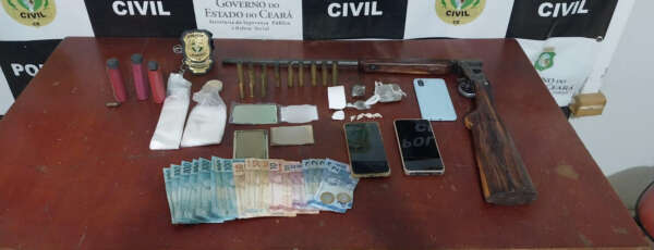 Ao tomarem conhecimento de que dois indivíduos estavam no bairro Pedrinhas em atitude suspeita, equipes da 1ª Delegacia de Polícia Civil de Juazeiro do Norte realizaram diligências até a localização dos suspeitos. Com a dupla, os policiais civis apreenderam dois revólveres calibre 38, uma espingarda, uma pistola calibre 9 milímetros, uma espingarda artesanal, oito munições calibre 32, cinco munições calibre 38 e quatro gramas de crack.