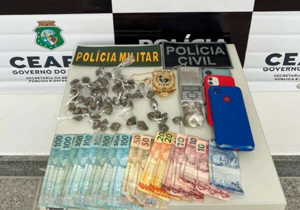 Três homens foram presos e um adolescente foi apreendido, nessa quarta-feira (17), em uma ação conjunta na cidade de Barro – Área Integrada de Segurança 19 (AIS 19) do estado. Com o grupo, equipes da Polícia Civil do Estado do Ceará (PCCE) e da Polícia Militar do Ceará (PMCE) apreenderam uma quantidade de drogas e itens relacionados ao tráfico de drogas. A ação contou com apoio de um cão farejador da PCCE.