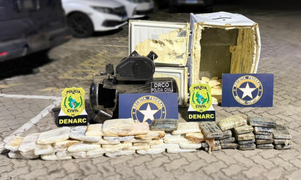 Durante a abordagem e a vistoria minuciosa dos equipamentos, os investigadores localizaram a droga escondida nos compartimentos internos dos objetos. Ao todo, foram apreendidos cerca de 55 quilos de skunk. Três homens, sendo dois de 30 anos e um de 28 anos, foram conduzidos à sede da Denarc. Um dos suspeitos já possui antecedentes criminais por tráfico de drogas, receptação e porte ilegal de arma de fogo. Um terceiro indivíduo também tem passagens por porte ilegal de arma de fogo. Na unidade policial, o trio foi autuado pelos crimes de tráfico de drogas e associação para o tráfico e colocados à disposição da Justiça.