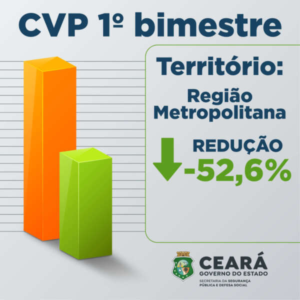 A redução histórica dos Crimes Violentos Contra o Patrimônio (CVPs) foi registrada também em Fortaleza, RMF e Região Sul do estado