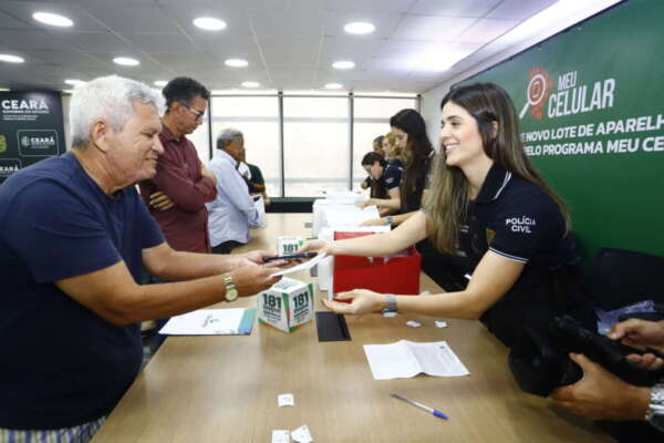 O Governo do Ceará chega à marca de mais de 13 mil celulares recuperados pelas Forças de Segurança do Estado desde o lançamento do programa Meu Celular, em 2024. Nesta terça-feira-feira (3), um novo lote, com cerca de 1.200 aparelhos, começou a ser entregue aos proprietários no Centro Integrado de Segurança Pública (Cisp), em Fortaleza. A ação foi conduzida pelo governador Elmano de Freitas, acompanhado do secretário da Segurança Publica e Defesa Social, Roberto Sá; do delegado-geral da Polícia Civil do Ceará, Márcio Gutiérrez, do comandante-geral da PMCE, coronel Sinval Sampaio; entre outras autoridades.