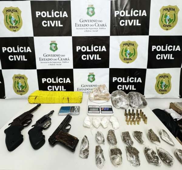 Um trabalho investigativo e de inteligência coordenado pela Polícia Civil do Estado do Ceará (PCCE) resultou, nessa quinta-feira (12), na prisão em flagrante de um homem, de 27 anos, em posse de um vasto material ilícito. A captura ocorreu no município de Juazeiro do Norte, na Área Integrada de Segurança Pública 2 (AIS 2) do Ceará. Contra ele, também havia um mandado de prisão por sentença condenatória pelo crime de tráfico de drogas.