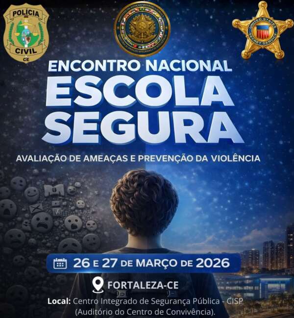 A Polícia Civil do Estado do Ceará (PCCE) irá promover, nos dias 26 e 27 de março, em Fortaleza, mais uma etapa do ciclo de eventos do “Programa Escola Segura 2026”. A iniciativa é uma realização da PCCE, em colaboração com o Centro Integrado de Inteligência de Segurança Pública – Regional Nordeste ( CIISPR/NE) e do Laboratório de Operações Cibernéticas (CIBERLAB), vinculados ao Ministério da Justiça e Segurança Pública (MJSP).