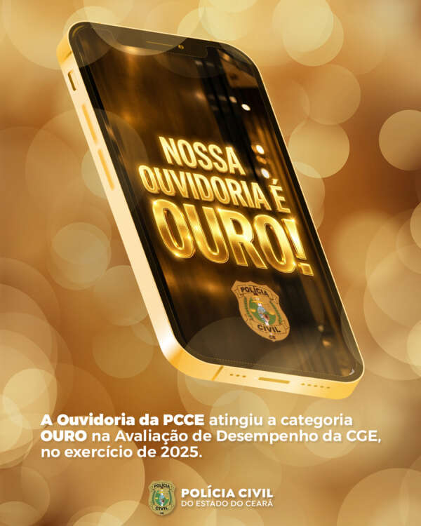 A Polícia Civil do Estado do Ceará (PCCE) alcançou mais um importante reconhecimento institucional ao conquistar o Selo Ouro na Avaliação de Desempenho das Ouvidorias 2025, divulgada pela Controladoria e Ouvidoria Geral do Estado (CGE). O resultado preliminar foi publicado no último dia 24 de março de 2026 e destaca o compromisso da instituição com a transparência, a escuta ativa da população e a melhoria contínua dos serviços públicos.